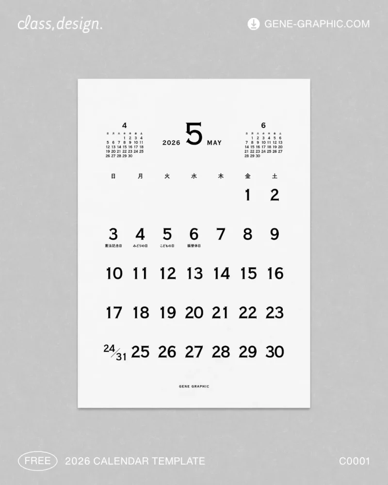 [無料素材]レトロモダンインテリアに合う日本語カレンダー[2026年版]