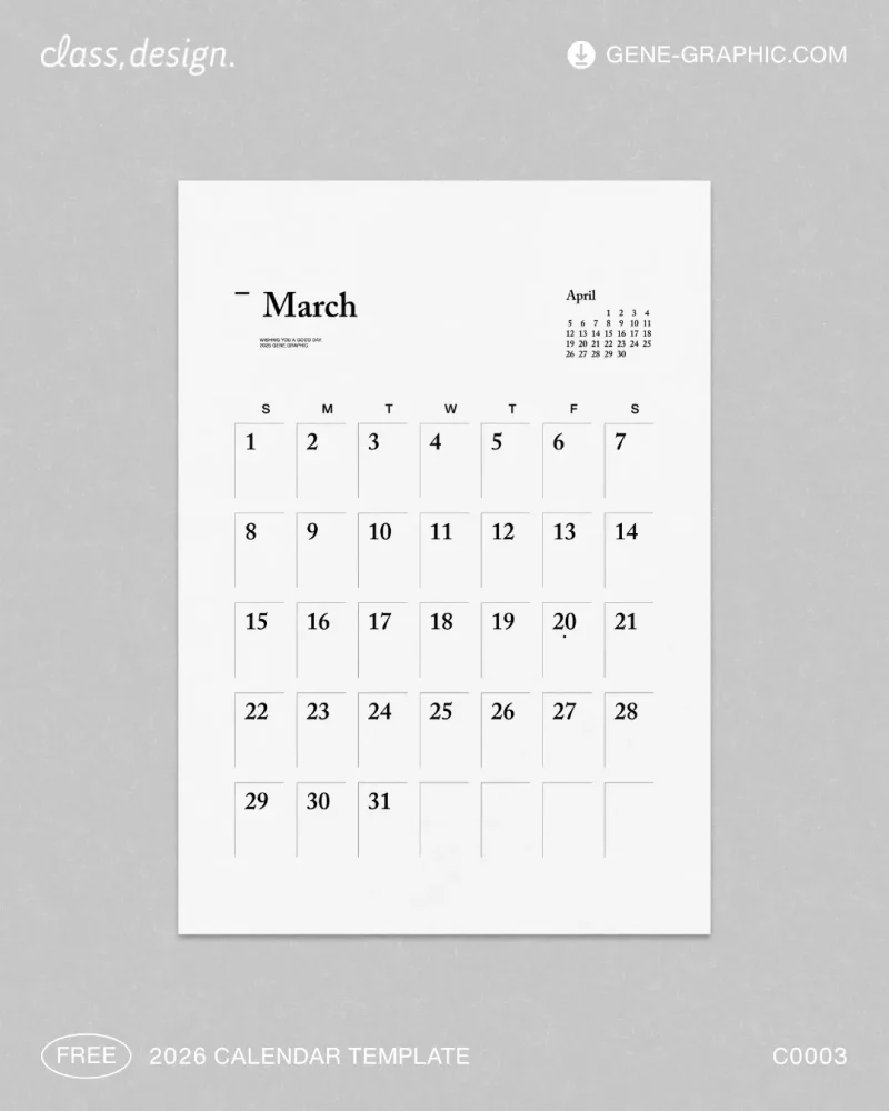 落ち着いたデザインが人気のラベル、L0003をベースにしたカレンダーです。手帳のように枠があるシンプルデザインで、スケジュールをたくさん書き込む方にぴったり。ビジネスシーンにもおすすめです。実用性と美しさを兼ね備えたカレンダーです。翌月表記のあり・なしで2パターンがあります。